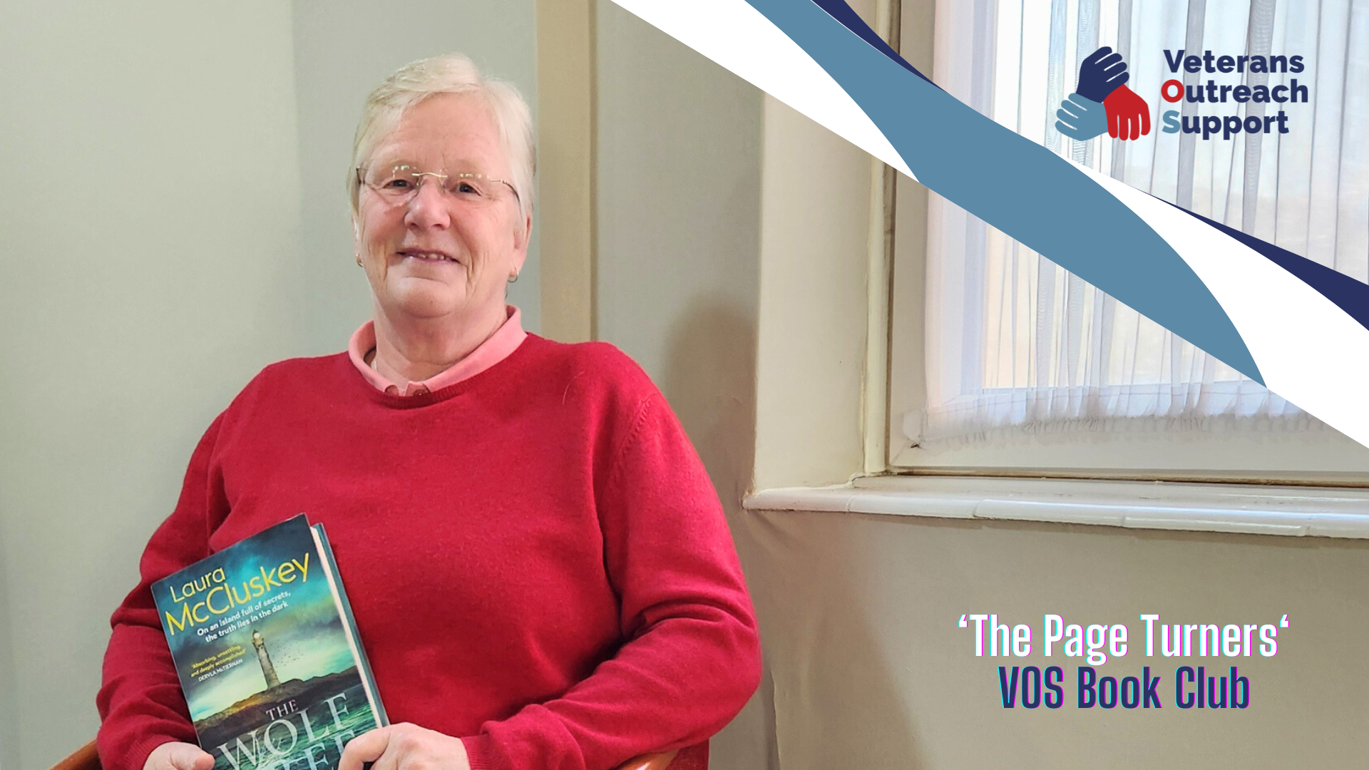 Image above: Mandy Vaughan, VOS member and veteran, holding a copy of one of VOS’ ‘The Page Turners’ Book Club’s books. C